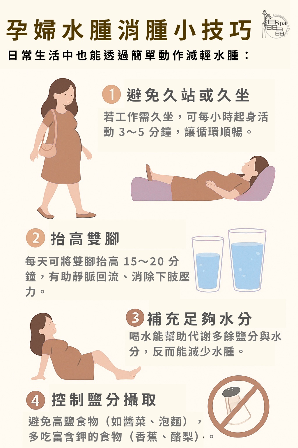 閱讀更多孕婦腳腫怎麼辦?台中晶晶SPA專業芳療師解析孕婦腳腫原因與孕婦按摩消腫技巧:循環引流、溫熱舒緩、安全側躺體位與日常保養建議,幫助改善水腫、放鬆身心,讓孕期更輕盈!